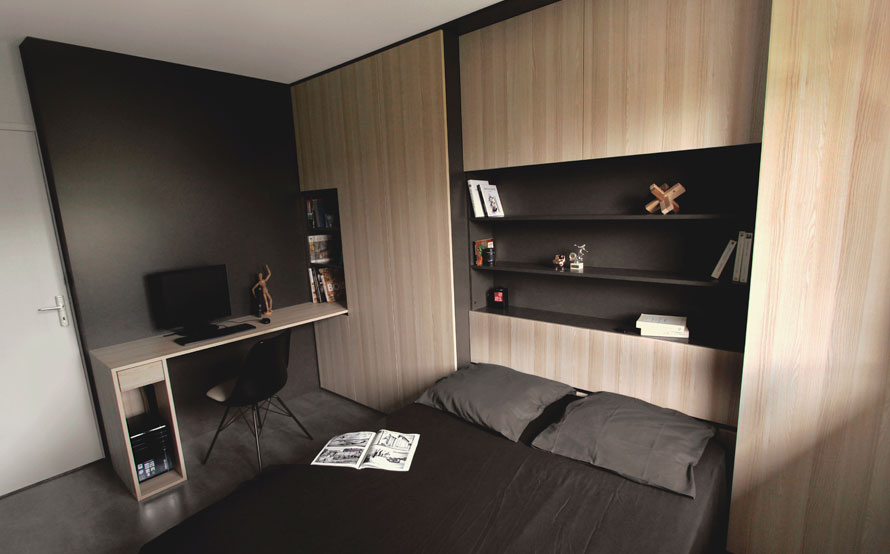 Véritable défis d'optimisation de l'espace, cette chambre de seulement 11 mètres carrés, a été entièrement réaménagé.