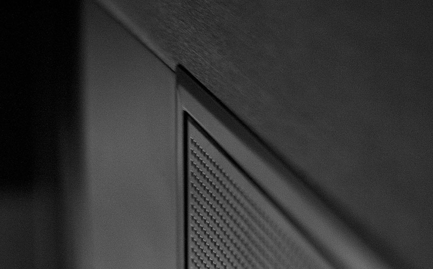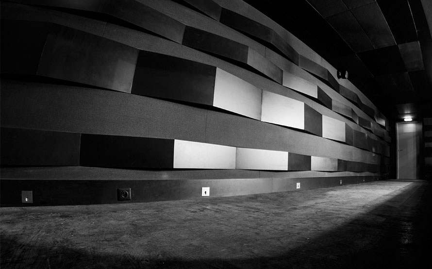 Habillage sur-mesure composé de panneaux MDF et tissu acoustique selon un pourcentage d'absorption sonore