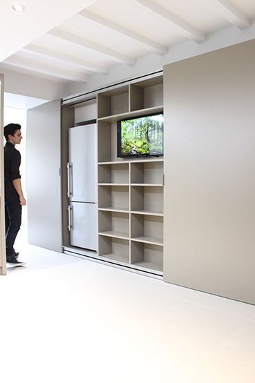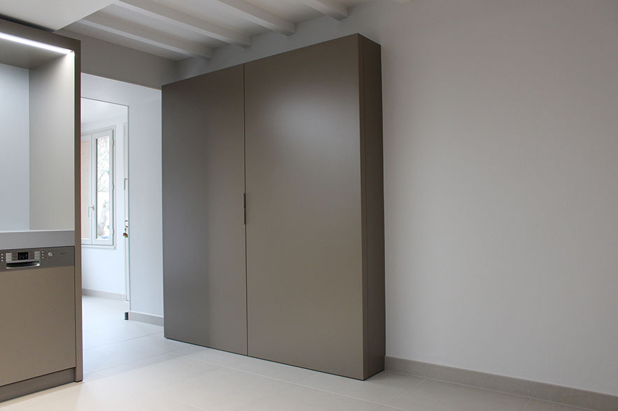 Poignées affleurantes, parfaitement alignées à la fermeture de l'armoire.