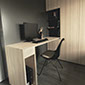Le client souhaitait y intégrer un coin bureau et un maximum de rangements notamment de dressing.
