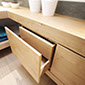 Fabrication d'un meuble de salle de bain minimaliste placage bois chêne à nœuds,