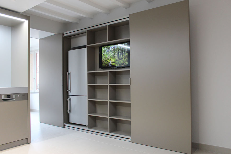 Poignées affleurantes, parfaitement alignées à la fermeture de l'armoire.