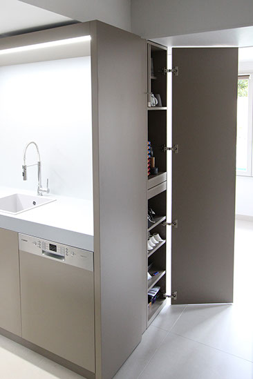 Cette cuisine sur-mesure dissimule plusieurs rangements fonctionnels